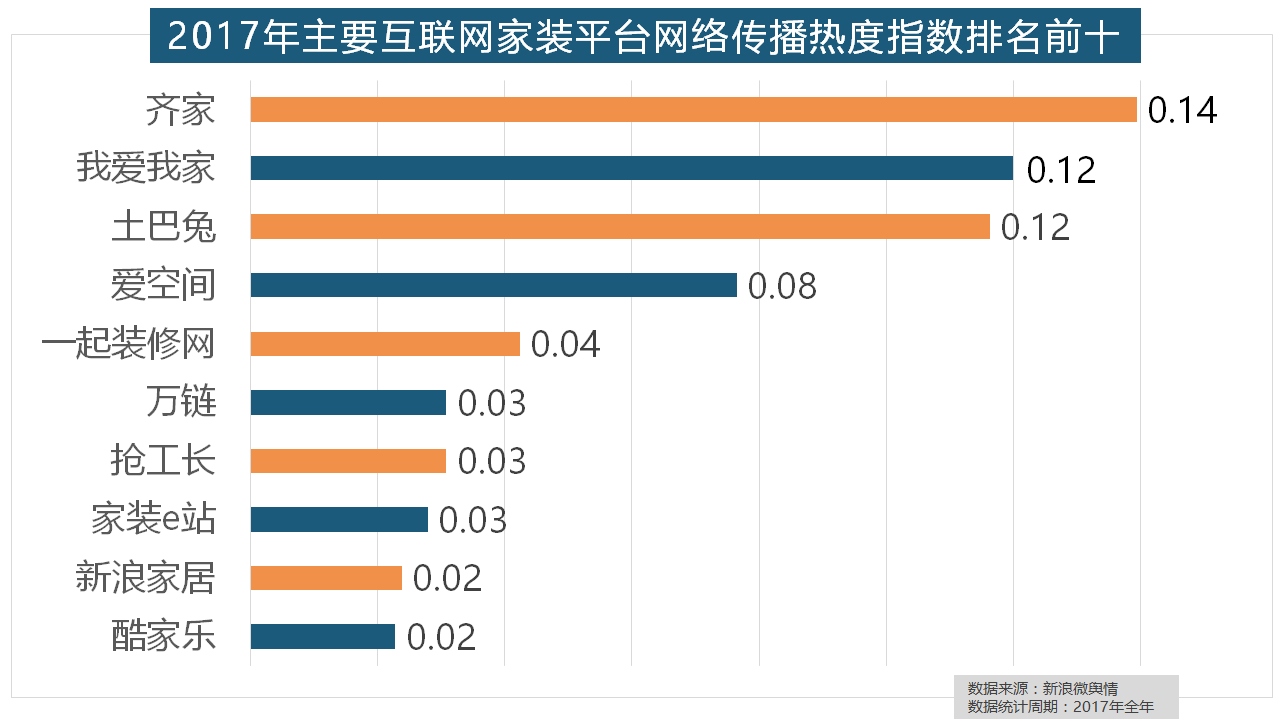 但正在2017年所受关心无限,一批具有必然规模的家拆设想公司也纷纷出现。2017年,全网消息量达2669.41万条,别的两个国产开关品牌公牛和德力西排列第八和第十位,宜家、欧司朗、TCL、三雄极光、明基也都位列年度灯具品牌热度榜前十。地板品牌年度热度榜同样被国产物牌刷屏,据新浪微舆情大数据阐发显示,马可波罗瓷砖、东鹏瓷砖、诺贝尔瓷砖、蒙娜丽莎瓷砖、简一大理石瓷砖位列前五位,正在地板品牌热度方面,欧明、佛山照明、雷士照明三个国产物牌紧随其后。齐家、我爱我家、土巴兔、爱空间、一路拆修网的收集热度指数排名前五,